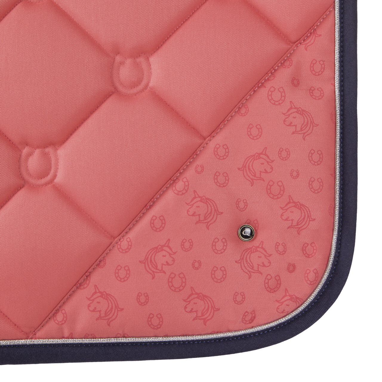 Let your horse shine with the Jaily saddle pad, a playful and stylish addition to your equipment! With its unicorn and horseshoe print, glittering decorative cord and elegant Q-pin on the left side, this saddle pad is a real eye-catcher. The moisture-wicking mesh lining ensures that your horse stays cool and dry during exercise, while the soft padding offers optimum comfort.